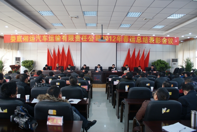 雄壯的國歌聲開啟了先進表彰會的序幕。首先,公司董事長兼總經(jīng)理彭瑞華做了2012年春運工作總結(jié)。他說,2012年春運于1月8日開始,至2月16日結(jié)束,全司上下緊緊圍繞“以人為本、科學(xué)組織、安全有序、優(yōu)質(zhì)高效”的總體要求,在各級政府及行業(yè)主管部門的關(guān)心和支持下,通過廣大員工的共同努力,實現(xiàn)了春運安全生產(chǎn)雙豐收,春運40天全司共完成招攬收入3496.42萬元,與2011年同期比增加了165.6萬元,增長了4.97%。全司共運行班次11.03萬次,共投入建制營運客車376臺、旅游公車30臺、出租車114臺,參運客車駕駛員484名、出租車駕駛員228名,安全運行里程736.8萬公里。春運40天,各單位充分利用了廣播、電視、網(wǎng)絡(luò)、報紙、刊物等宣傳媒體,及時宣傳報道了公司的春運安全生產(chǎn)情況。同時,他指出,今年春運期間各單位均能從服務(wù)質(zhì)量入手,改變春運期間客流量大、服務(wù)工作難的傳統(tǒng)觀念,盡管節(jié)后站場內(nèi)車多客流大,站外運輸市場競爭激烈,各單位均能克服困難,維護好站場秩序穩(wěn)定和站內(nèi)衛(wèi)生清潔,較好的樹立了文明窗口的形象。尤其是正月初六、初七因旅客較多,部分班車因道路堵塞晚點,致使旅客滯留在候車室,各單位均能安排人員耐心解釋,熱情服務(wù),直至旅客發(fā)完后才回去休息,受到廣大旅客的一致好評。最后他強調(diào),2012年是國家“十二•五”規(guī)劃實施后承上啟下的重要一年,也是我司實現(xiàn)跨越式發(fā)展的關(guān)鍵之年,我們要繼續(xù)發(fā)揚成績,克服不足,把春運工作的重心從緊緊圍繞目標任務(wù)開始,制定切實可行的方案和措施,從而變“坐攬營收”為招攬營收,真正做到收入顆粒歸倉。