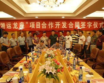 公司董事肖立文與婁底市紅鉆石房地產(chǎn)開發(fā)有限公司項(xiàng)目總負(fù)責(zé)人陳昌濤代表雙方簽訂合作開發(fā)協(xié)議
