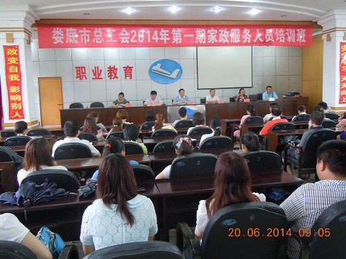 2014年6月20日上午9點,由婁底湘運職業技術培訓學校承辦,婁底市總工會主辦的2014年第一期家政服務員培訓班在湘運職業技術培訓學校五樓教室隆重舉行開班儀式,市總工會黨組成員、工會副主席譚紅衛,婁底湘運公司董事、副總經理兼工會主席謝克明等有關領導出席開班儀式。