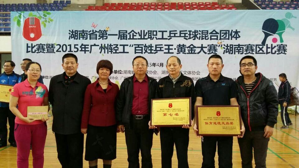 4月12日,從湖南省第一屆企業職工乒乓球團體賽暨廣州輕工“百姓乒王黃金大賽”湖南賽場傳來喜訊,我司代表隊在本次比賽中頑強拼搏,取得了第七名的好成績,同時榮獲大賽體育道德風尚獎。