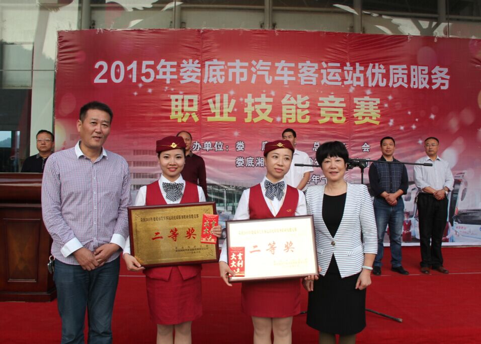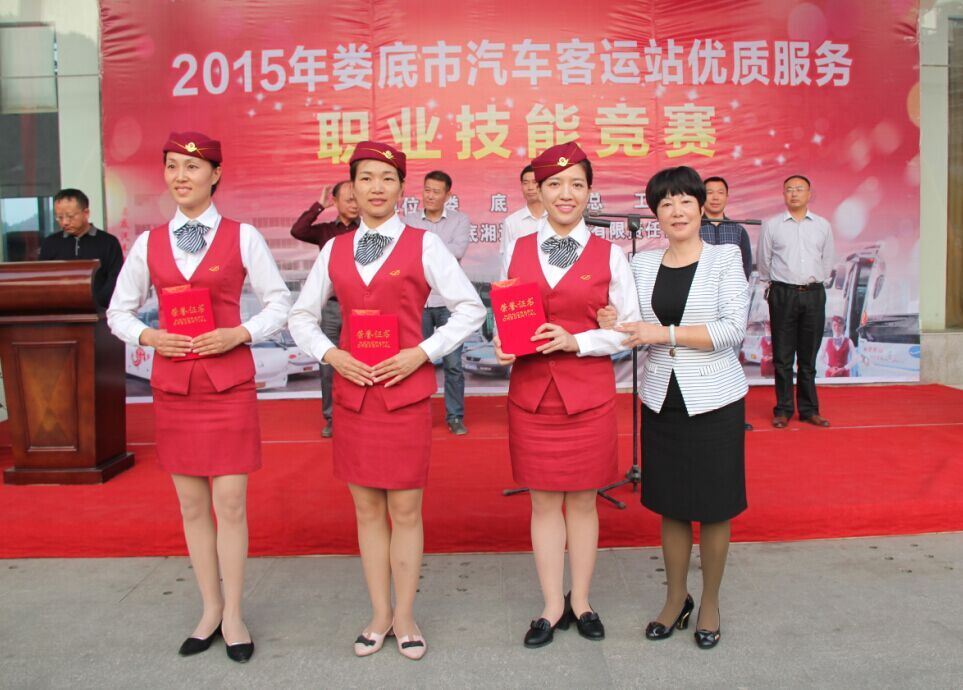 10月22日,由婁底市總工會和婁底湘運集團聯合舉辦的2015年婁底市汽車客運站優質服務職業技能競賽在婁底汽車南站圓滿落下帷幕。在為期兩天的比賽中,來自全市各縣市區的六支代表隊,30名選手進行了激烈角逐,婁底汽車南站代表隊以雄厚實力斬獲團體一等獎,同時被授予“婁底市五一先鋒集體”榮譽稱號,婁底客運分公司代表隊、新化分公司代表隊獲得團體二等獎。婁底汽車南站王菲成功摘得個人桂冠,并被授予“婁底市五一標兵”榮譽稱號。婁底客運分公司邱媚等獲得個人二等獎。新化分公司周海燕等獲得個人三等獎。婁底市人大常委會黨組副書記、副主任、市總工會主席肖有勝,市總工會黨組書記、常務副主席鄧煥章,公司董事長兼總經理彭瑞華等領導出席了開、閉幕式典禮。