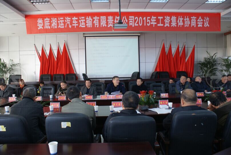 為促進勞動關系和諧穩定,建設幸福婁運,11月26日上午,公司在總部六樓會議室召開2015年工資集體協商會議,來自公司企業方代表、員工方代表近四十人參加了此次會議,市總工會黨組成員、副主席譚衛紅應邀出席,企業方首席代表、公司董事長、總經理彭瑞華主持會議。