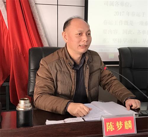 2017年春運(yùn)將于1月13日開(kāi)始至2月21日結(jié)束,為確保廣大旅客春節(jié)出行平安順暢,2017年12月29日上午9時(shí),公司董事長(zhǎng)兼總經(jīng)理彭瑞華在六樓會(huì)議室主持召開(kāi)公司2017年春運(yùn)工作會(huì)議,對(duì)2017年春運(yùn)工作進(jìn)行部署和安排,號(hào)召全司上下全力以赴迎戰(zhàn)春運(yùn),爭(zhēng)取2017年開(kāi)門(mén)紅的勝利。公司領(lǐng)導(dǎo)、總部全體員工,各二級(jí)單位、子公司負(fù)責(zé)人(正、副職)以及各辦主任等參加了會(huì)議。