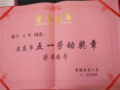 26日上午,婁底市"五一”先模表彰暨勞動競賽動員大會在華天酒店隆重召開,我司王軍同志在大會上被授予婁底市"五一”勞動獎章榮譽稱號。