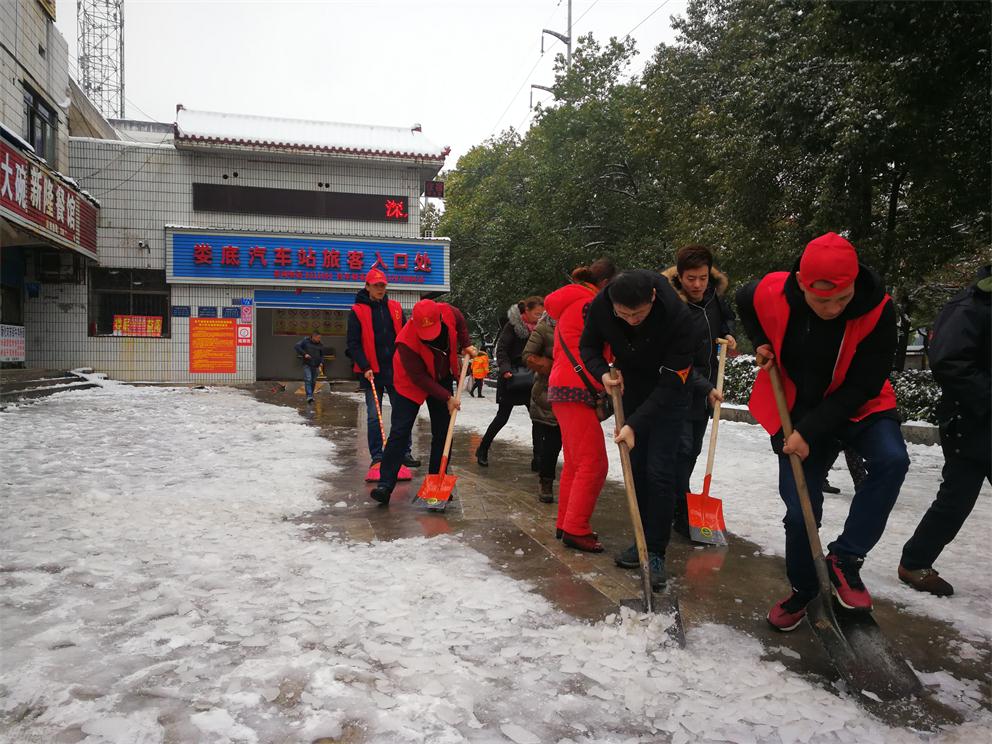 早上八點半,在車站生產副經理付育平帶領下,辦公室、調度、稽查大隊、營收監控隊、服務班、安保等部門近20多名志愿者拿著鏟子、鐵鍬和竹掃把等工具,對車站旅客入口處通道、車輛進站通道、車站站坪、短途通道、車輛出站通道等地的堅冰進行鏟除,寒風凜冽,積雪厚重,冰塊堅硬,但我們的雷鋒志愿者們熱情高漲,大家發揚不怕若不怕累的精神,齊心協力,分工合作,揮鍬掄鎬,鉚足了勁,發起了挑戰嚴冰暴雪的攻堅戰,在車站奏響了美妙的樂意,汗水濕透了背脊,手掌磨起了血泡,冰雪打濕了鞋襪,大家全然不顧,只看見一頂頂小紅帽在雪地上不停的運轉,很多駕駛員和班線承包人紛紛加入鏟雪隊伍,婁星微馬隊的20多名隊員們在他們隊長的帶領下也來到車站幫著一起鏟雪除冰,他們橙色的微馬隊服也是一道道靚麗的風景線。大家都有一個共同的名字——學雷鋒志愿者!他們的一言一行彰顯真情,贏得了過路市民的連聲稱贊!