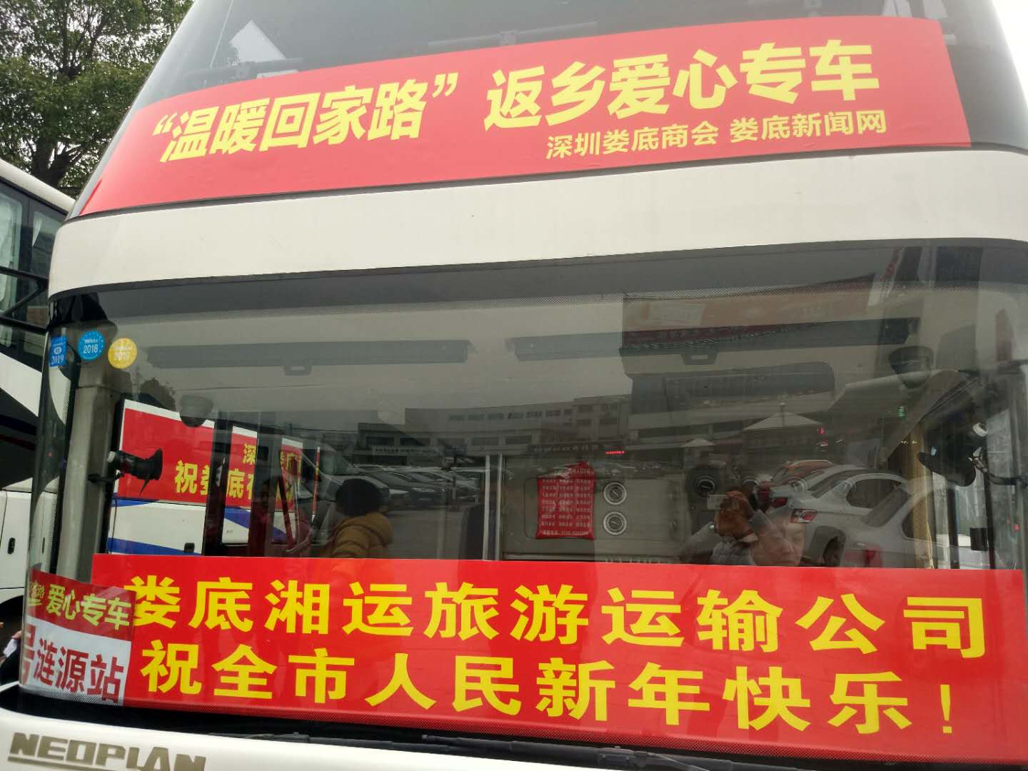 五臺 "溫暖回家專車″于27日從深圳返回,經(jīng)過十來小時的長途跋涉,已將婁底、新化、冷江、漣源、雙峰返鄉(xiāng)人員全部平安送到家。