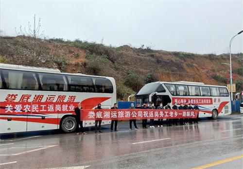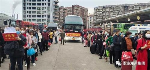 為貫徹落實(shí)中央和省、市關(guān)于疫情防控和全力做好農(nóng)民工返崗運(yùn)輸服務(wù)保障的決策部署,針對(duì)農(nóng)民工返崗生產(chǎn)企業(yè)復(fù)工緊迫的情況,在市委市政府、行業(yè)主管部門的大力支持以及各縣市人民政府和交通、人社等部門的精心組織下,我市啟動(dòng)“點(diǎn)對(duì)點(diǎn),一站式”客運(yùn)包車,助力農(nóng)民工安全有序返崗。作為承擔(dān)各縣市農(nóng)民工返崗復(fù)工包車運(yùn)輸任務(wù)的主力軍——婁底湘運(yùn)集團(tuán),從2月18日開(kāi)始,我司各客運(yùn)單位已調(diào)度70臺(tái)次定制包車,分20批安全運(yùn)送1662名婁底、新化、漣源、雙峰、冷江籍農(nóng)民工前往長(zhǎng)沙瀏陽(yáng)、浙江義烏、福建、廣州、東莞、貴州、海口等地返崗復(fù)工。