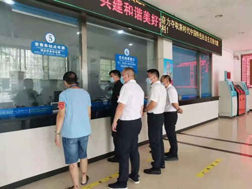 此次督查采取四不兩直的方式,督查組來到婁底汽車南站候車廳,檢查了旅客及司乘人員口罩佩戴、進站健康碼和行程碼查驗、體溫測量等疫情防控工作,何鋒在空調候車廳向旅客親切詢問:到哪里去?車站是否查驗了健康碼、行程碼?是否督促你們佩戴口罩?在聽到旅客滿意的回答后,他來到發班區,登上了一輛即將發車的婁底至于塘班車,檢查車輛疫情防控措施落實情況,何鋒對在場人員強調,班車一定要隨車配備測溫槍,切實加強防控措施,確保萬無一失。最后他來到售票廳,對工作人員進行了親切問候,叮囑大家要加強自我保護,并提醒旅客購票保持一米線距離等。