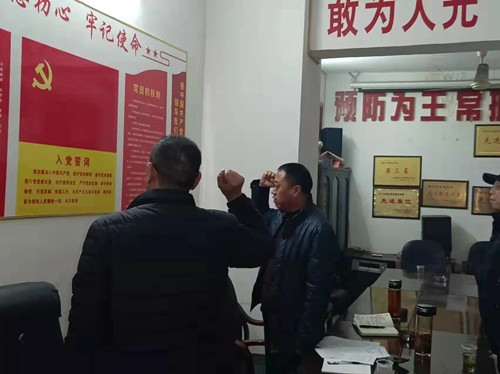 “我志愿加入中國共產黨,擁護黨的綱領,遵守黨的章程,履行黨員義務,執行黨的決定,嚴守黨的紀律........。”在莊嚴的新黨員入黨宣誓儀式上,面對鮮紅的黨旗,預備黨員們在領誓人的帶領下,面向鮮紅的黨旗,舉起右拳許下錚錚誓言,表達了自己對黨的忠誠和為共產主義奮斗終身的決心。
