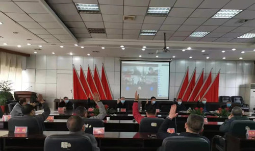 4月19日上午,公司董事長兼總經理、黨委書記彭瑞華主持召開第三屆十一次股東代表視頻會議,會議設置了一個主會場和多個分會場,全體股東代表采取現場或線上方式出席了會議。