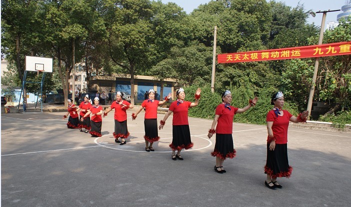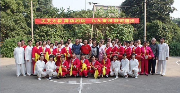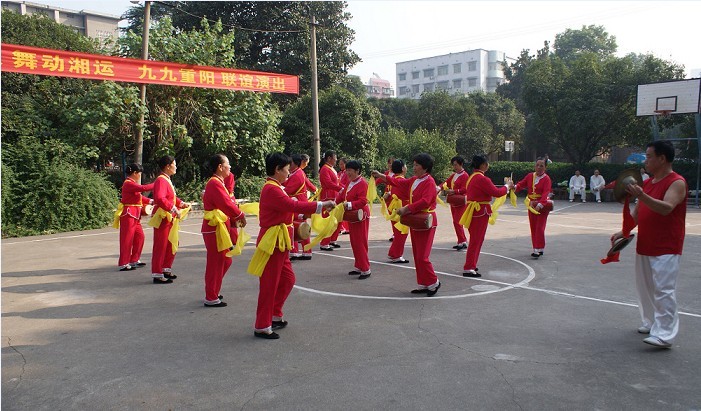 九時許,在歡快喜慶的腰鼓聲中 “天天太極 舞動湘運 九九重陽”聯誼演出拉開了序幕。