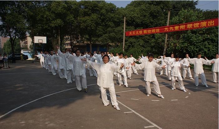 公司董事謝克明代表公司向全司離退休、內退、協保的老同志致以節目的祝賀,祝老年朋友健康長壽,節目快樂、晚年幸福;市太極拳協會粟會長在慶祝會上致詞,他說湘運太極站在湘運公司領導和退管辦的關心支持下,太極站越辦越好,對此,市太極協會謹向湘運公司表示感謝,同時祝老年朋友節日愉快,祝“九九重陽”聯誼演出圓滿成功!